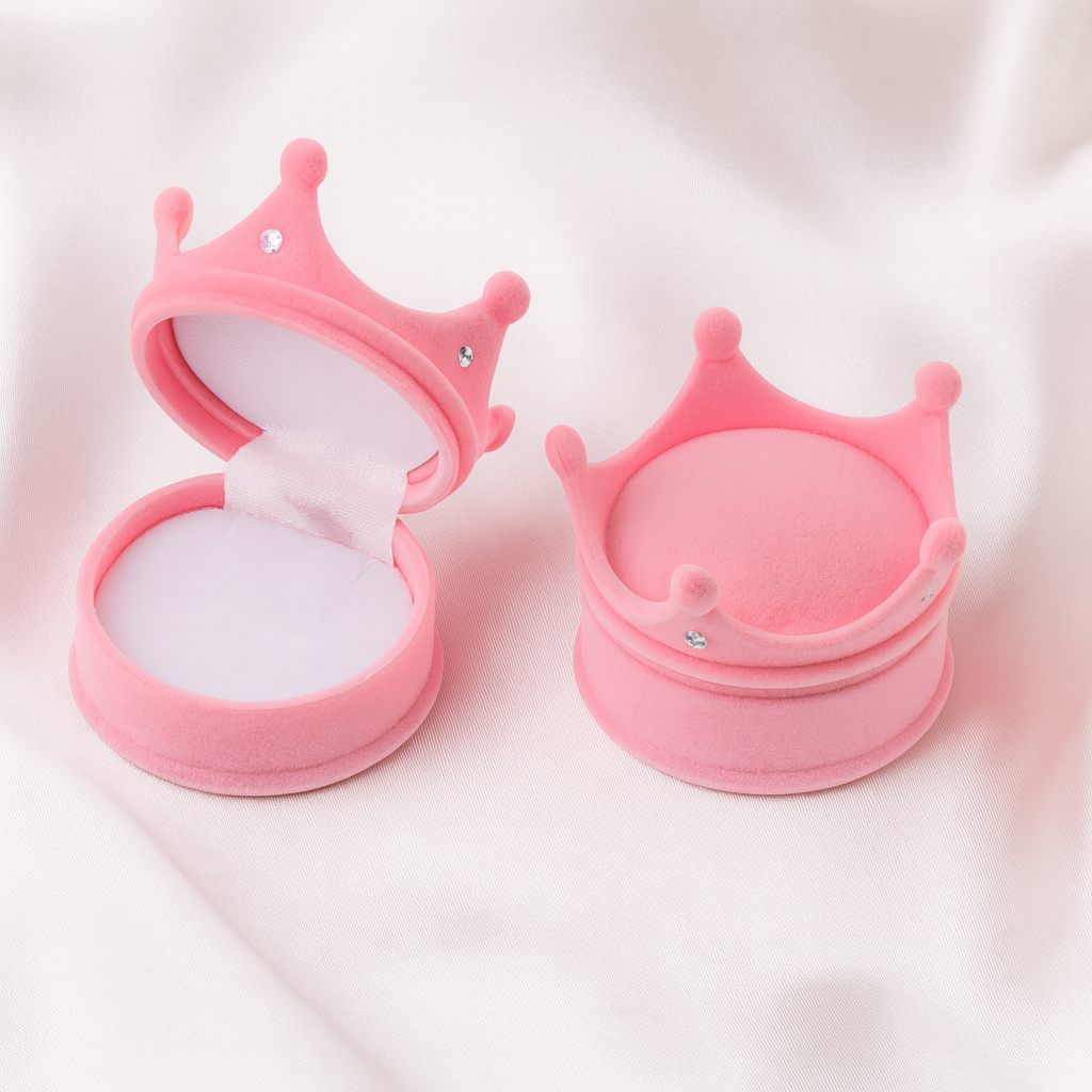 To eleganckie pudełeczko w kształcie różowej korony to idealny sposób na zapakowanie pierścionka, kolczyków lub drobnego naszyjnika. Wykonane z miękkiego aksamitu, ozdobione subtelnymi kryształkami, prezentuje się wyjątkowo kobieco i luksusowo.