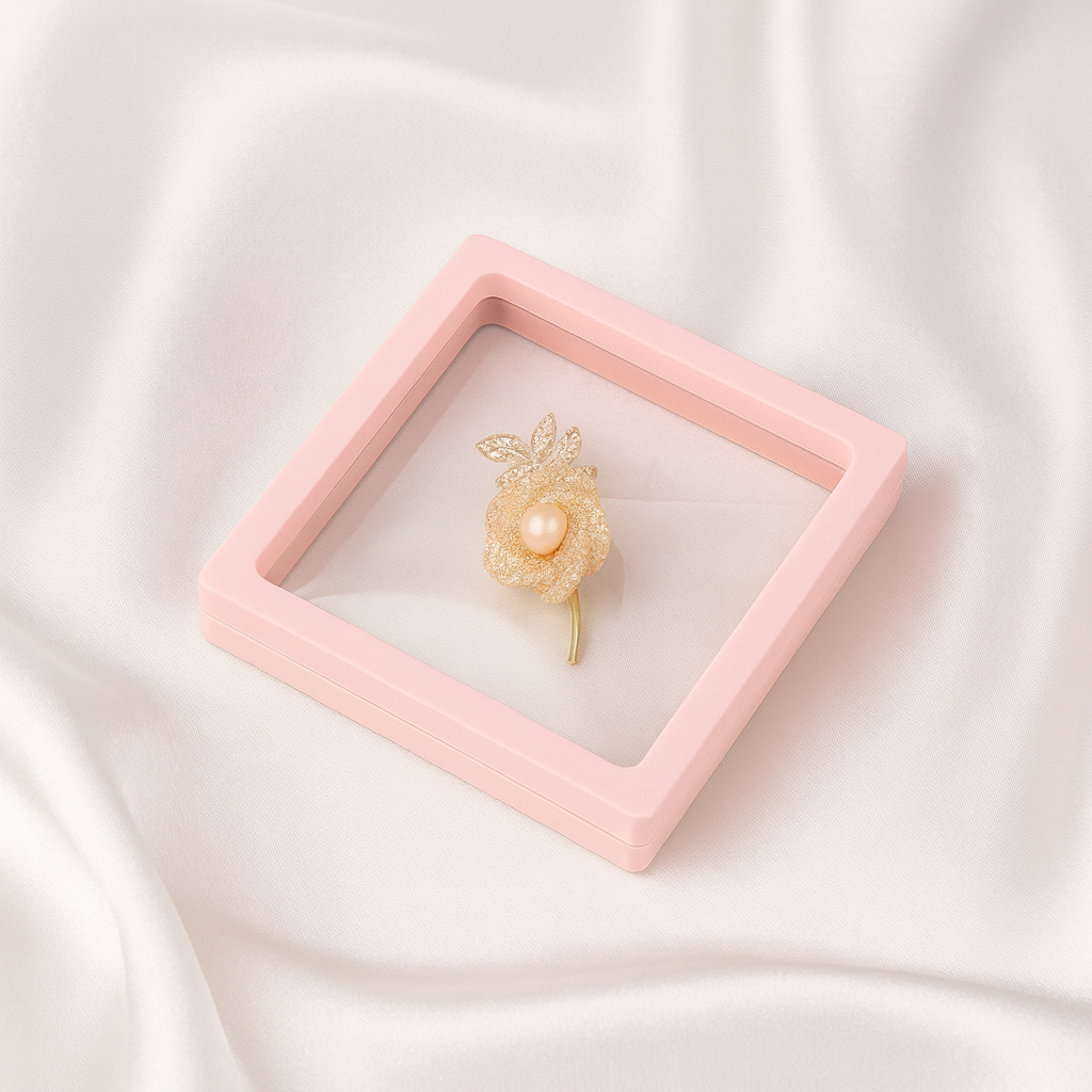 To nowoczesne pudełko z przezroczystą ramką to idealne rozwiązanie do przechowywania lub prezentacji pierścionków, broszek, kolczyków i drobnych ozdób. Delikatny różowy kolor w połączeniu z minimalistycznym designem sprawia, że biżuteria prezentuje się elegancko i stylowo.